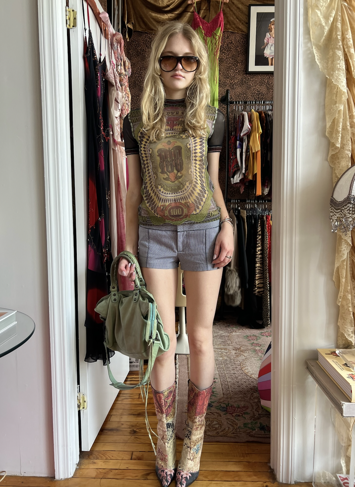 Leah in DSquared2 Shorts and Jean Paul Gaultier SS94 Tee