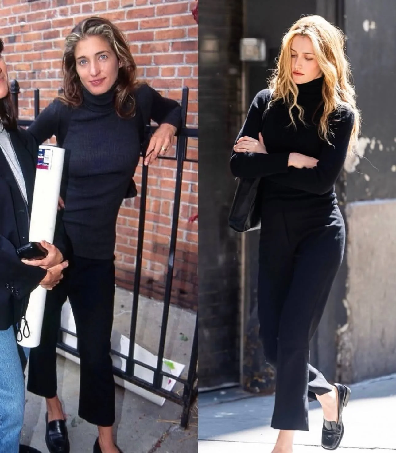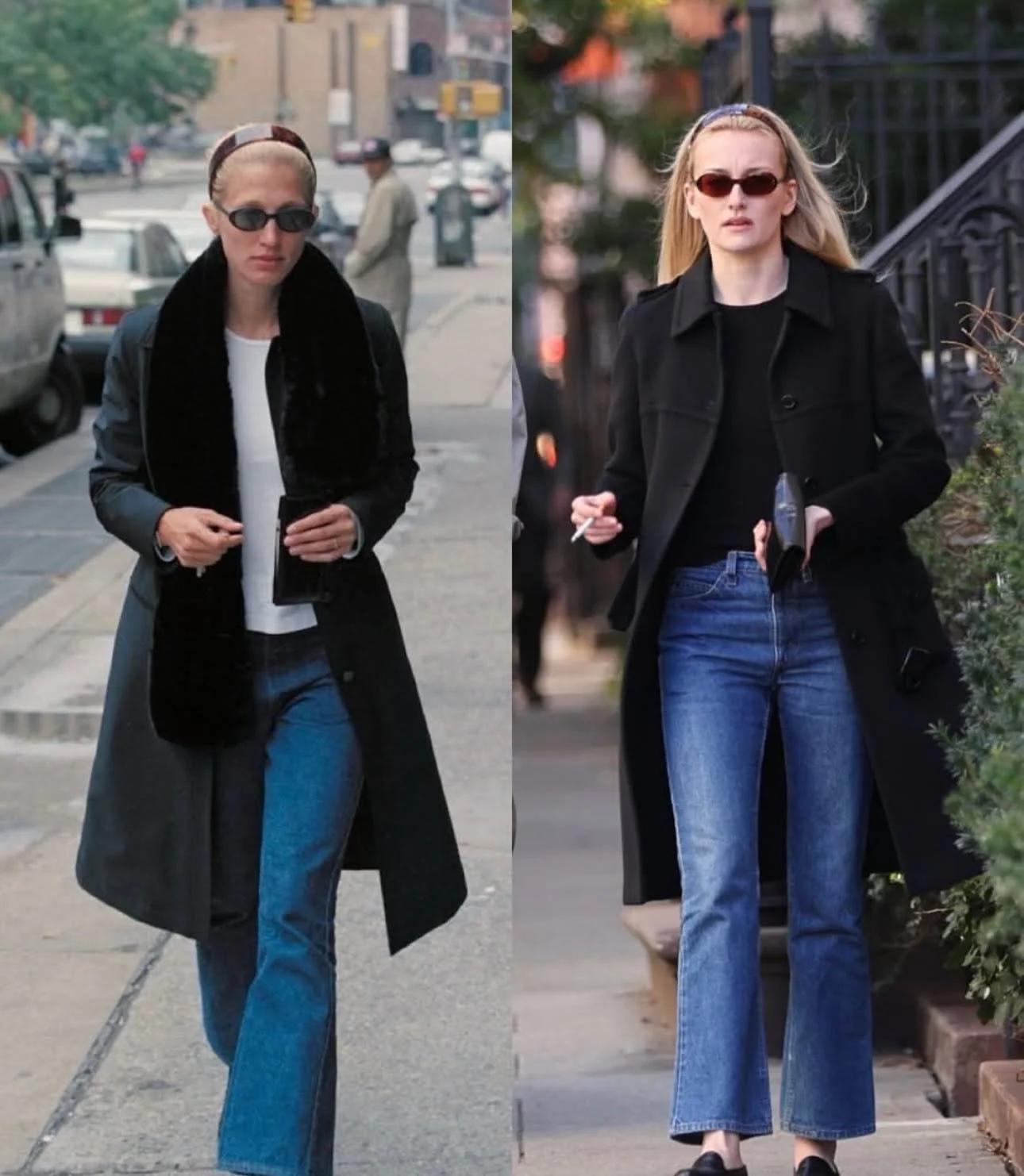 Carolyn Bessette Kennedy captured this era perfectly through her outfits. She frequently wore Prada, Helmut Lang, Jil Sander, and Yohji Yamamoto, most of which were defining brands of the time. She also paired them with pieces like Levi’s 517 jeans, France Luxe tortoiseshell headbands, and Selima Optique Aldo sunglasses.